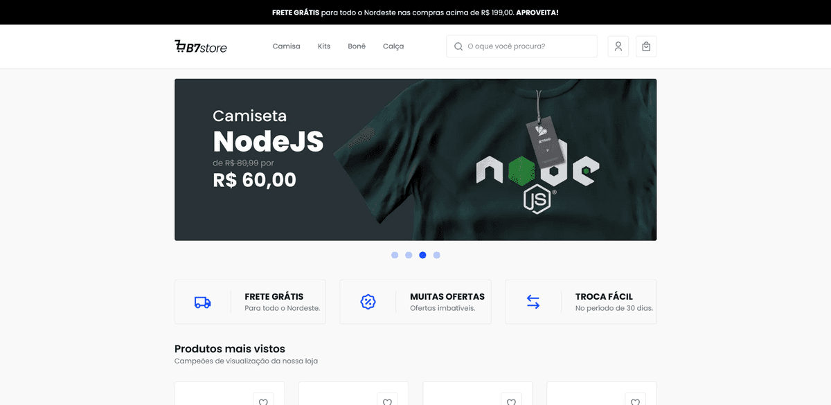 Loja de vestuário com temas de tecnologia. Criada em NextJS no Front-End. Com carrinho de compra, frete, login, cadastro e muito mais.