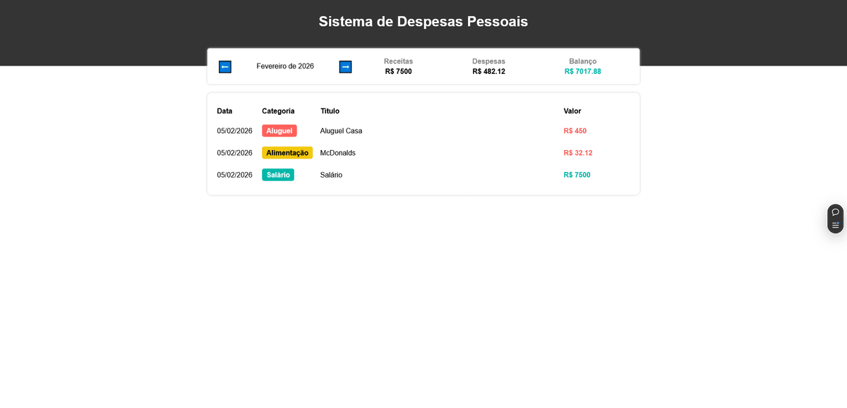 Criado para registro de despesas e receitas filtrando por mês. Foram criadas funções auxiliares para resolver problemas como: pegar o mês atual, filtrar a lista completa de dados e exibir apenas por mês, formatar datas, alterar o mês e a lista filtrada de acordo com o mês selecionado.